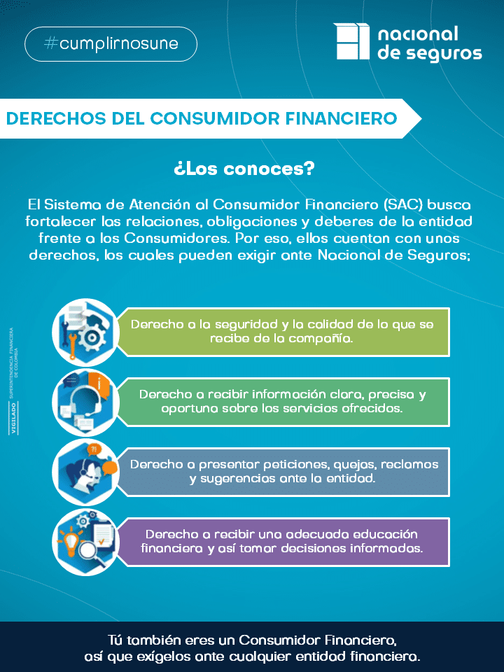 - Impulsar a nivel institucional la cultura en materia de protección a los derechos de los consumidores y clientes de NACIONAL DE SEGUROS.